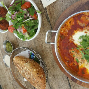 של- שקשוקה וסלט עם התוספת האהובה עלי - גבינות מטוגנות , פטה .